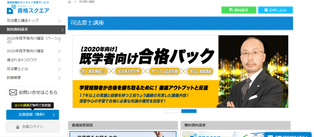【資格スクエア 司法書士講座の無料資料請求はこちら】