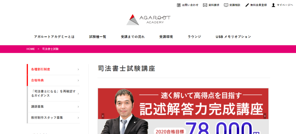 アガルートは講座やテキストがシンプルです。公式サイトも無駄がなく見やすいです。簡素に見えますが、余計な情報がないのでシンプルなデザインが好みの人におすすめです。